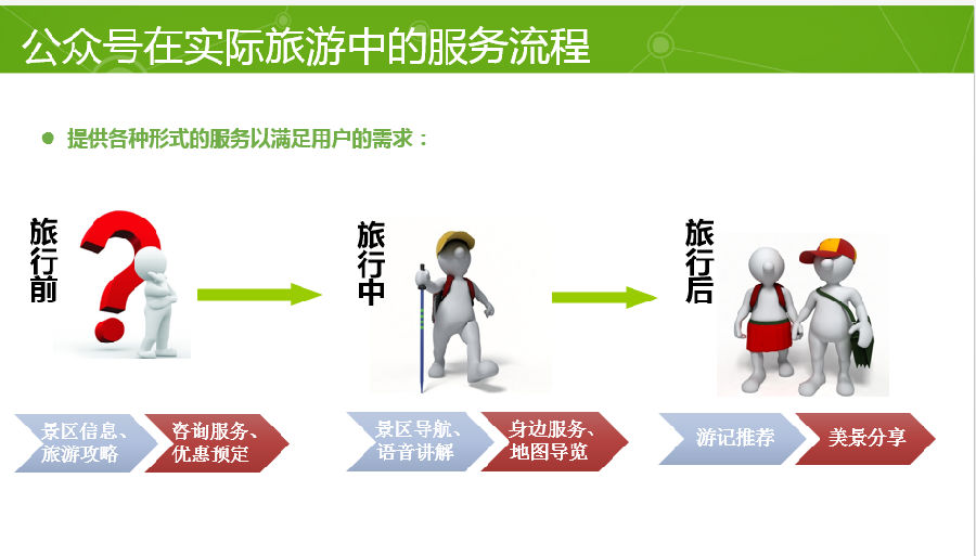 1. 旅游业是典型的注意力经济,适合个性服务满足与深度沟通的微信,将影响旅游业的新格局,也将成为旅游业必备的核心竞争力之一。随着旅行电商时代的到来,微信已成为在线旅游企业的移动预订和服务渠道。