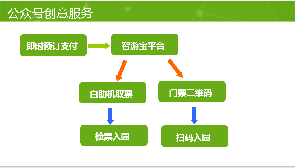 3. 我们在微信公众号的运营中,也注入了传统文化元素和更多创意,将微信的服务属性发挥到极致:① 国内首个融入文化元素和色彩象征的微信二维码,讲述绍兴的动人历史;② 即时预订支付与智游宝平台的对接,让游客买票进园更快捷;③ 金牌语音讲解和景区导航导览提供贴身导游服务;④微地图和微卡等衍生品为游客提供更好体验。