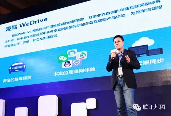 9月24日,腾讯公司与北京四维图新科技股份有限公司在北京柏悦酒店联合召开车联网产品发布会,双方共同推出了新一代车载互联网整体解决方案趣驾WeDrive, 这是业界首次具备全方位优质互联网服务和云端跨屏同步能力的整体车载解决方案,也标志着自2014年5月腾讯入股四维图新之后双方在共同开拓车联网领域上的合作落地。 在此次大会上,腾讯副总裁马喆人先生发表讲话: 腾讯拥有多种优质移动互联网服务,支持用户驾车出行的广泛信息娱乐需求,具备跨屏同步的海量账户体系,并已在物联网上积极进行探索。与四维图新合作在业界率先推出车载互联网整体解决方案趣驾WeDrive,是腾讯支持用户快速增长的驾乘需求和开拓车联网市场的一项战略性举措,也是腾讯对合作伙伴与产业创新的承诺。“除了通过趣驾WeDrive为驾车用户提供一流的优质资讯和娱乐内容,腾讯将在车载场景下积极进行人际社交、人车互联和物联的开拓创新,并期待能把车载信息服务的用户体验进行本质性提升。趣驾WeDrive已经开始受到业界的关注,腾讯将和四维图新一起,共同支持汽车行业合作伙伴的信息化和互联网化,让用户的驾车出行更加安全、便捷和快乐!” 腾讯地图平台高级总监李京晶随后在大会中为汽车界揭开了“趣驾 WeDrive”的神秘面纱,就让我们先睹为快它的创新性体验吧