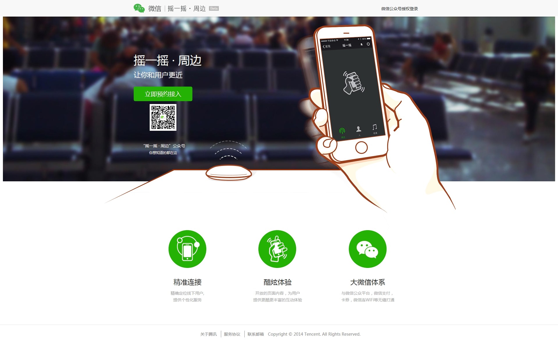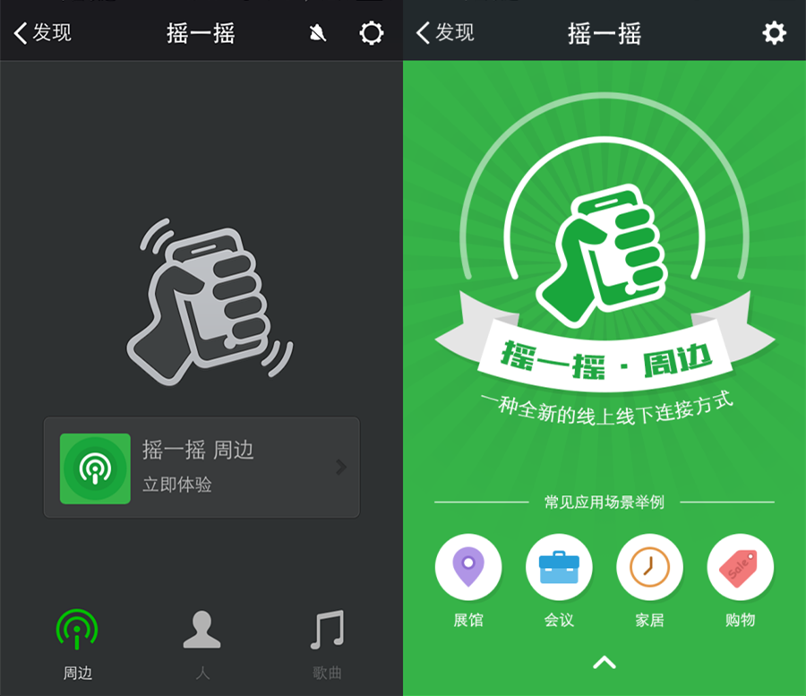 同时,我们也希望更多的商户和开发者可以参与进来,和我们的用户一起,让微信“摇一摇•周边”能实现、能想象的空间继续无限扩大。