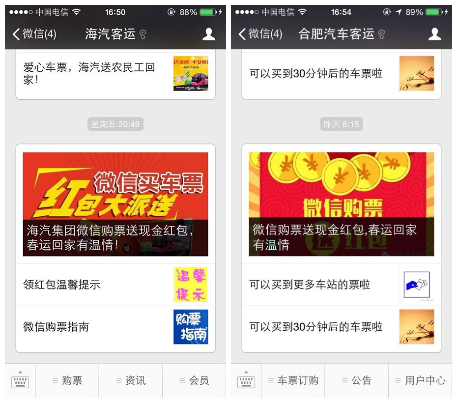 微信购票赢红包 2月13日起至3月15日 各大汽车客运站活动车站:广东、江苏、海南等省,广州、海口、三亚、苏州、南通、常州、南通等数十个城市的100余个车站。