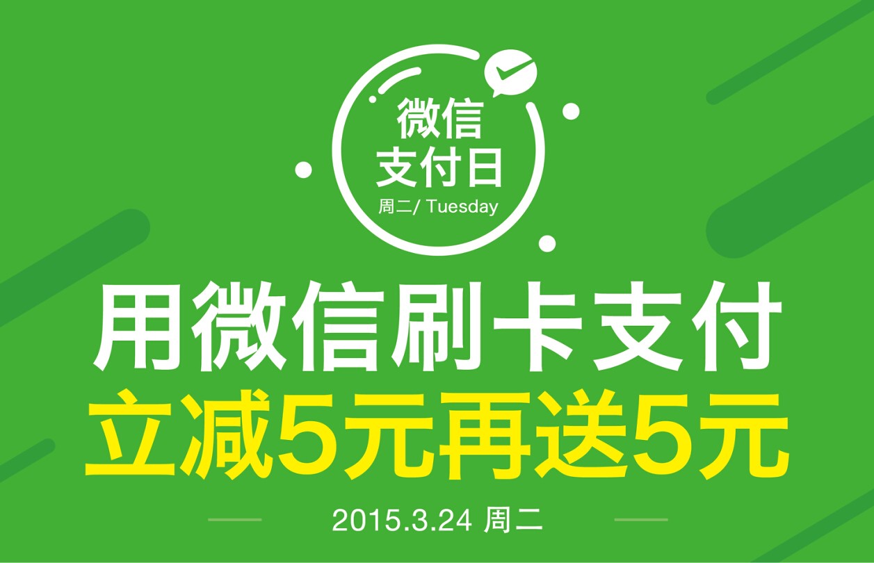 截至明天,这已经是第三次微信支付日了,微信支付团队正努力地与更多城市的更多商家积极探讨零售业行业的运营新模式,希望为广大用户带去更有新意,更优惠的消费体验,所以,小伙伴们记得咯,周二,微信支付与你有个约会~