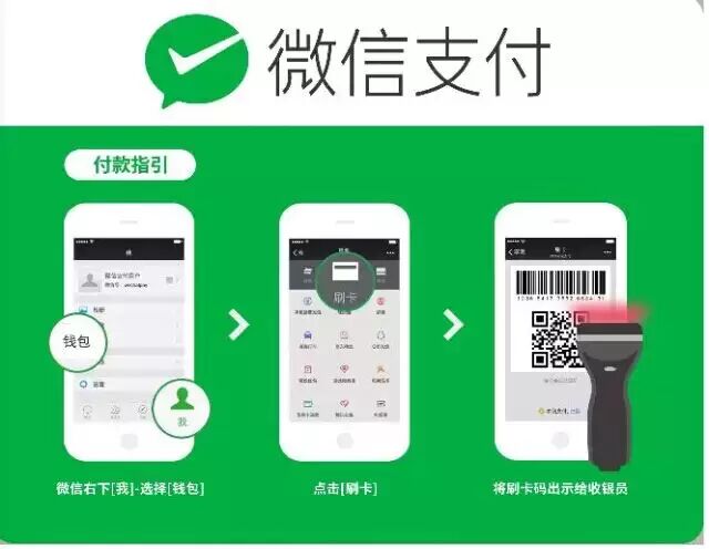 如果你是小派的忠实粉丝,相信已经目睹过前两次微信支付日的激烈战况了,如果还有小伙伴不知道如何参与微信支付日的活动,小派也很乐意在这里再教大家一遍的哈:在商超及便利店选好所需商品后,只需打开微信【我】-【钱包】-【刷卡】,将条码及二维码页面给店员扫描即可。优惠轻松享,用微信支付,就是这么任性!